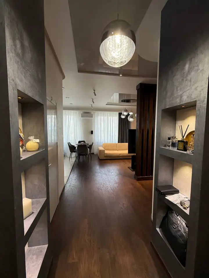 Просторная квартира с ремонтом, мебелью и бытовой техникой. Две спальни, два с/у, гардеробная, большая лоджия. Высота потолков — 3,3 м. Отопление централизованное, дом оборудован собственной котельной. Подогрев пола в зонах плитки. Надежные стены из монолита и газобетона. В доме есть подземный и наземный паркинг.