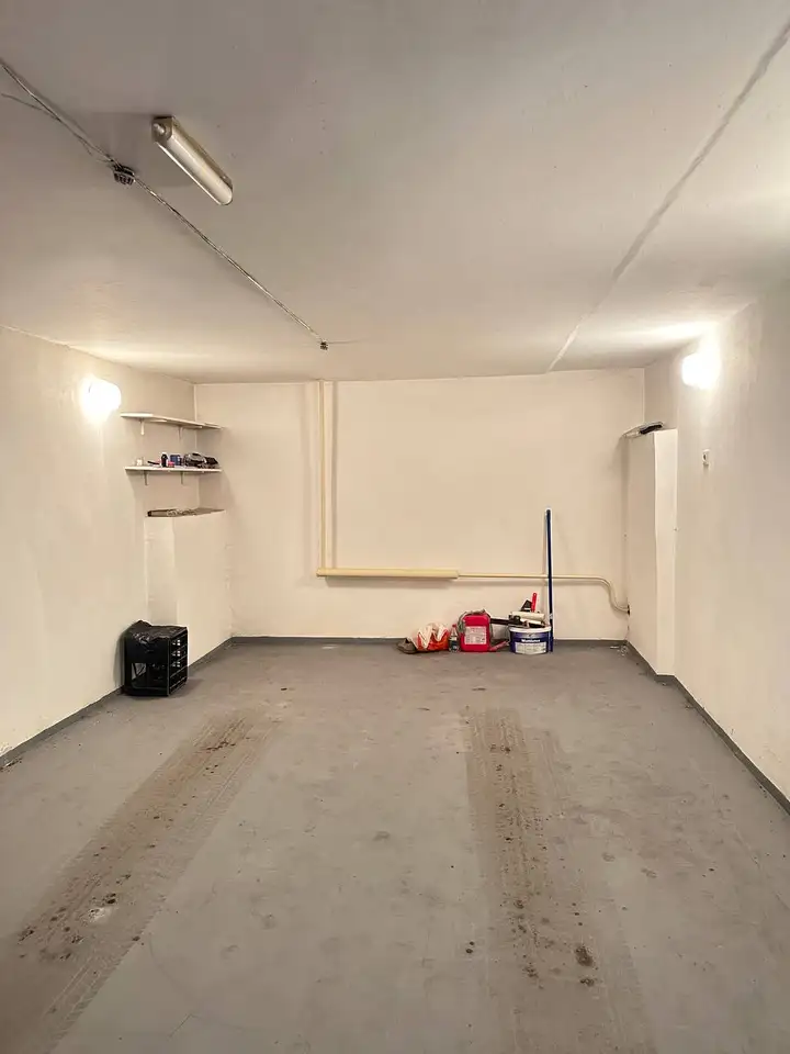 Площадь бокса 24 кв.м. Размер 6м х 4м. Высота ворот позволяет заехать в бокс большому внедорожнику. Стены оштукатурены, пошпаклеваны и выкрашены белой краской Matlateх. На полу стяжка. Бокс подключен к центральному отоплению.